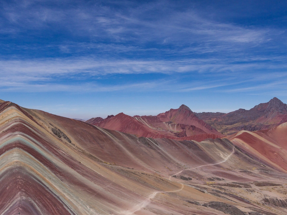 We will hike to Rainbow Mountain, known locally as Vinicunca. The trail will challenge us as we ascend to 5,200 meters. Colored mineral layers will paint the mountains in reds, yellows, and greens. We will take time to enjoy the panoramic views and celebrate this achievement.