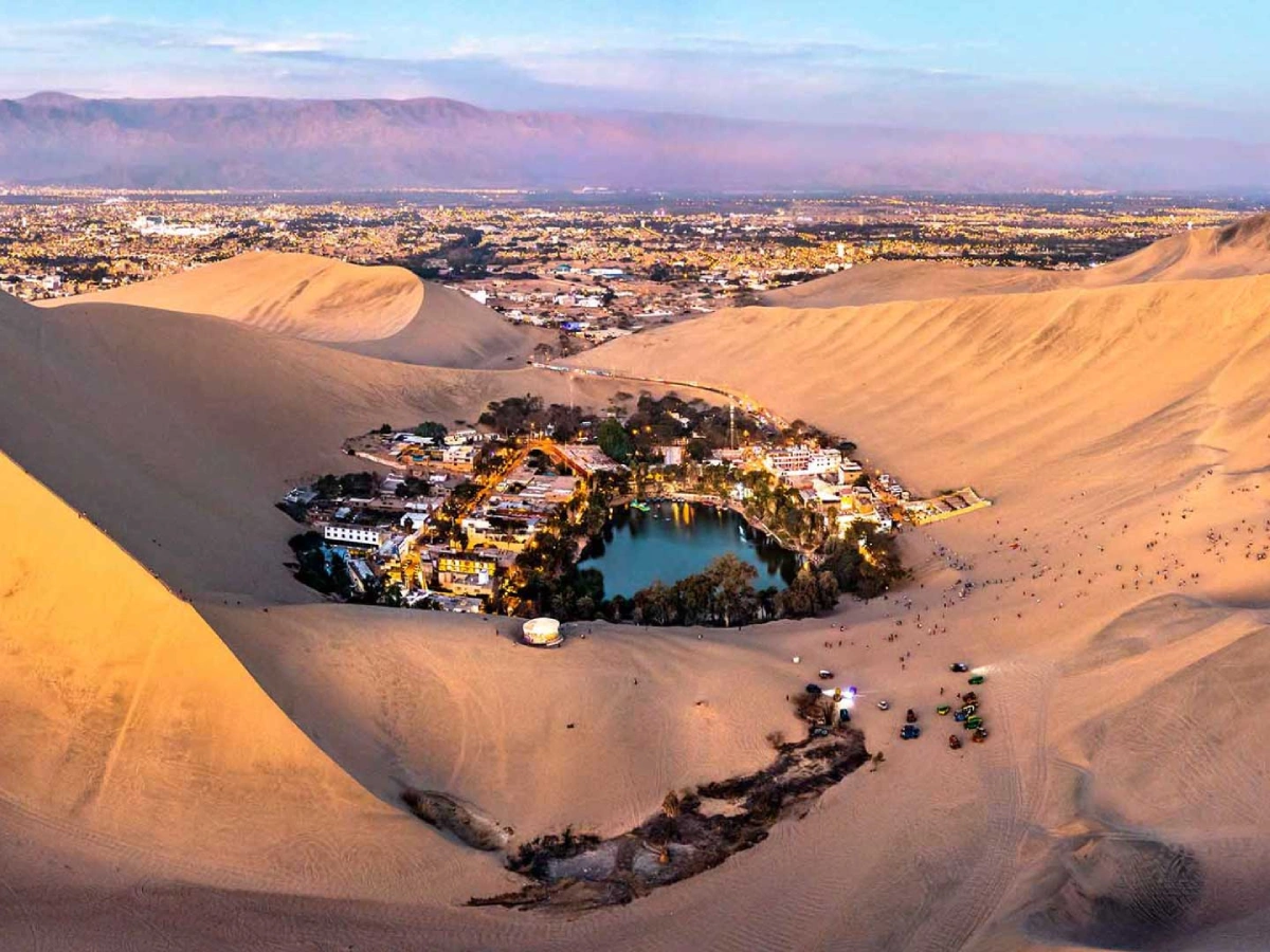 We will enjoy a relaxing lunch at the vineyard or a nearby restaurant. Local cuisine includes flavorful seafood, criollo dishes, and refreshing fruit juices. After lunch, we will continue toward our next destination: the Huacachina Oasis. This lush desert lagoon lies hidden between golden sand dunes.